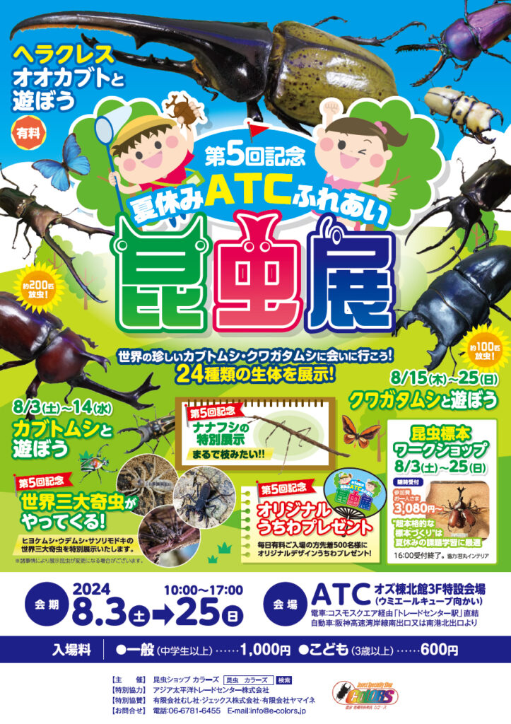 ค่าธรรมเนียมการเข้าร่วม: 100 เยนต่อคน (1 รอบ/3 นาที) นิทรรศการแมลงแบบโต้ตอบ ATC ฉลองครบรอบ 5 ปีวันหยุดฤดูร้อน